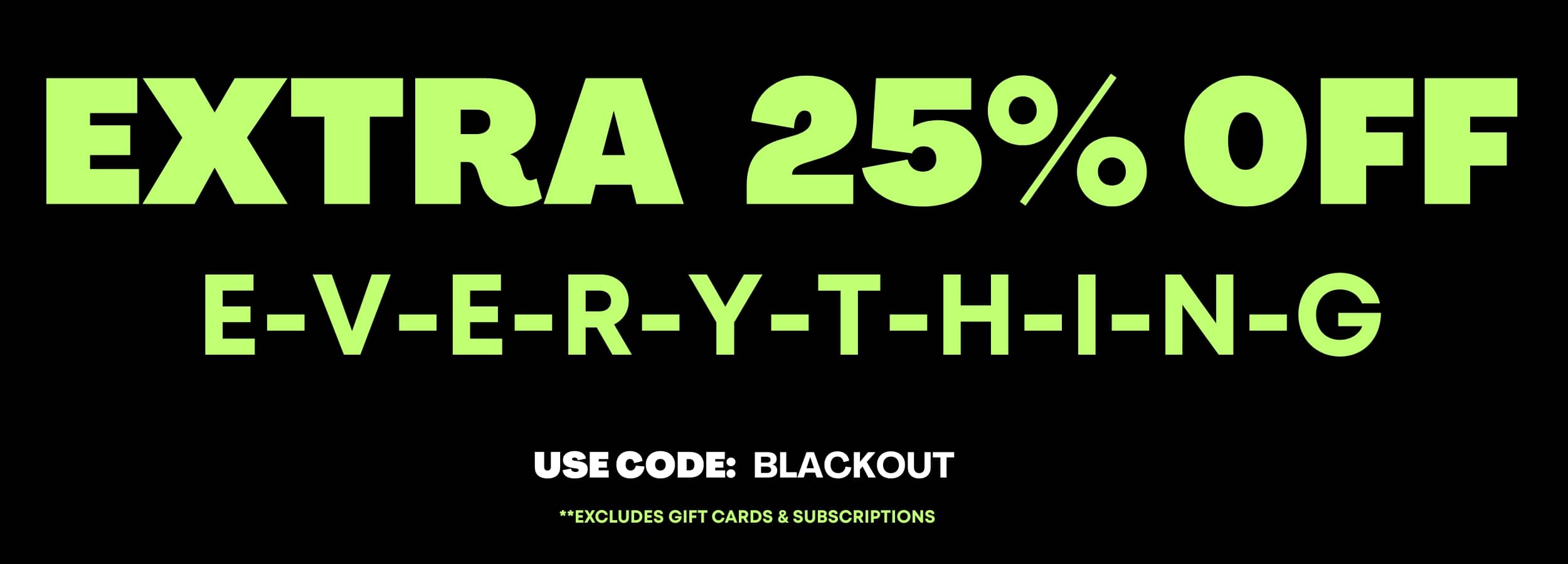 **Discount code not applicable to subscriptions or gift cards**