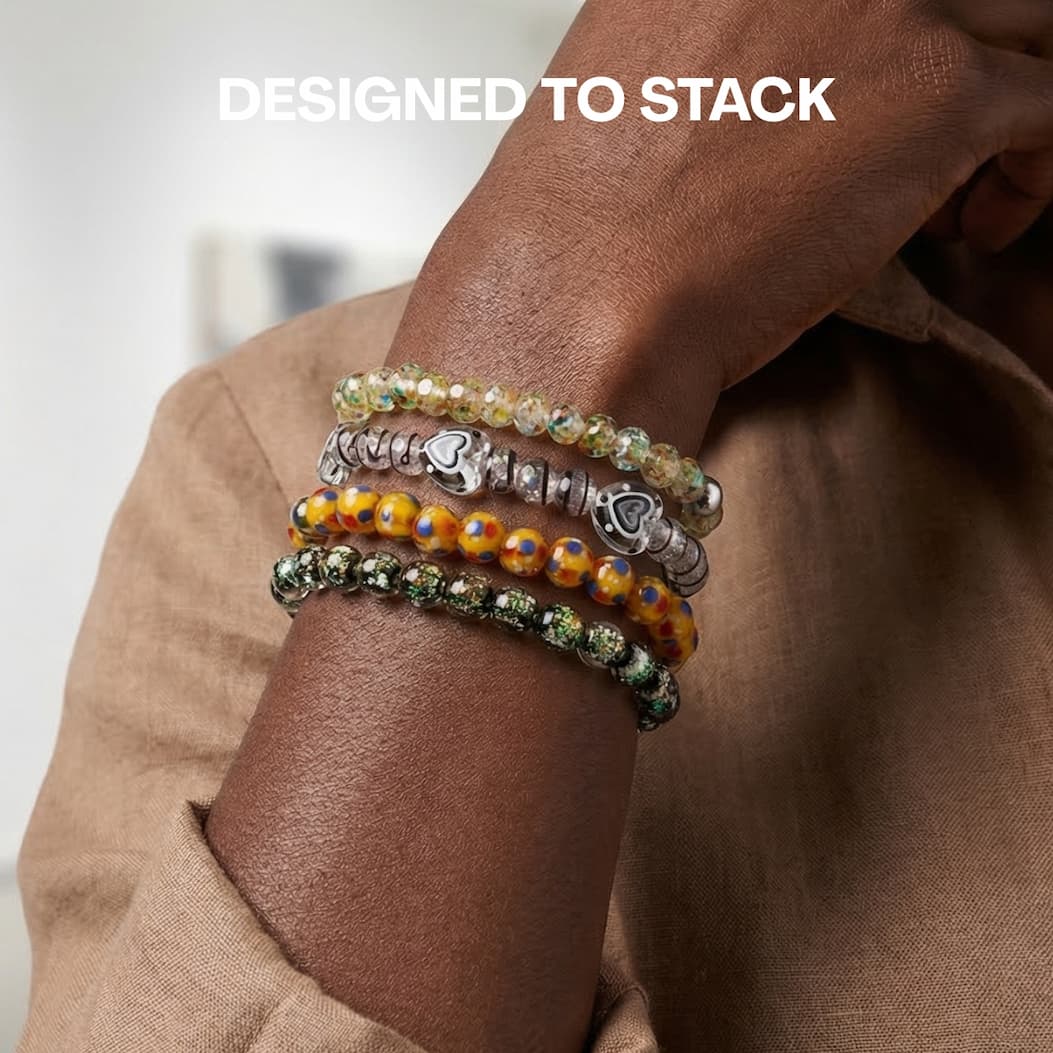 The MoMA Art Collection celebrates the idea that jewelry can exist like art within a gallery — thoughtfully designed, sculptural, and timeless. Each piece feels like a miniature work of art, balancing shape, light, and texture the same way a modern installation does within a museum space. Smooth finishes echo polished gallery floors, while subtle metallic accents reflect the glow of overhead spotlights. Whether stacked like a layered exhibition or worn as a single statement piece, each design feels gallery-worthy — bold in its simplicity and refined in its presence. The MoMA Art Collection transforms everyday styling into a curated moment — where jewelry becomes art, and the wearer becomes the exhibition. — Mario Christian Co-Founder & Designer | | | | Liquorice Heartbreaker | Firework Glass Sugar Bracelet |