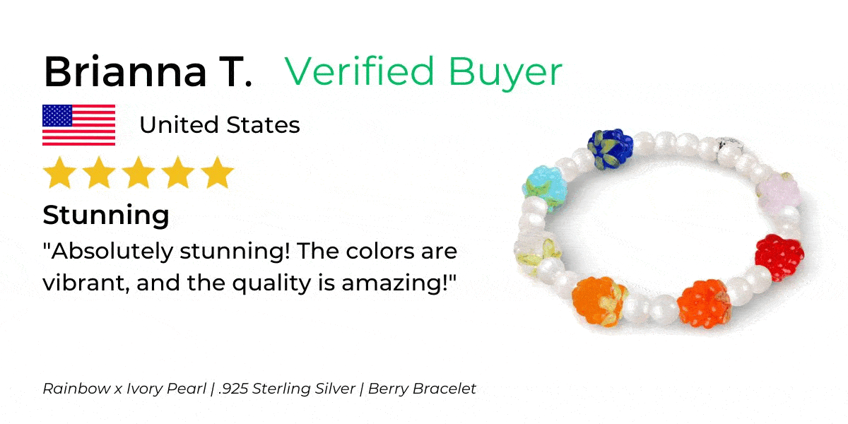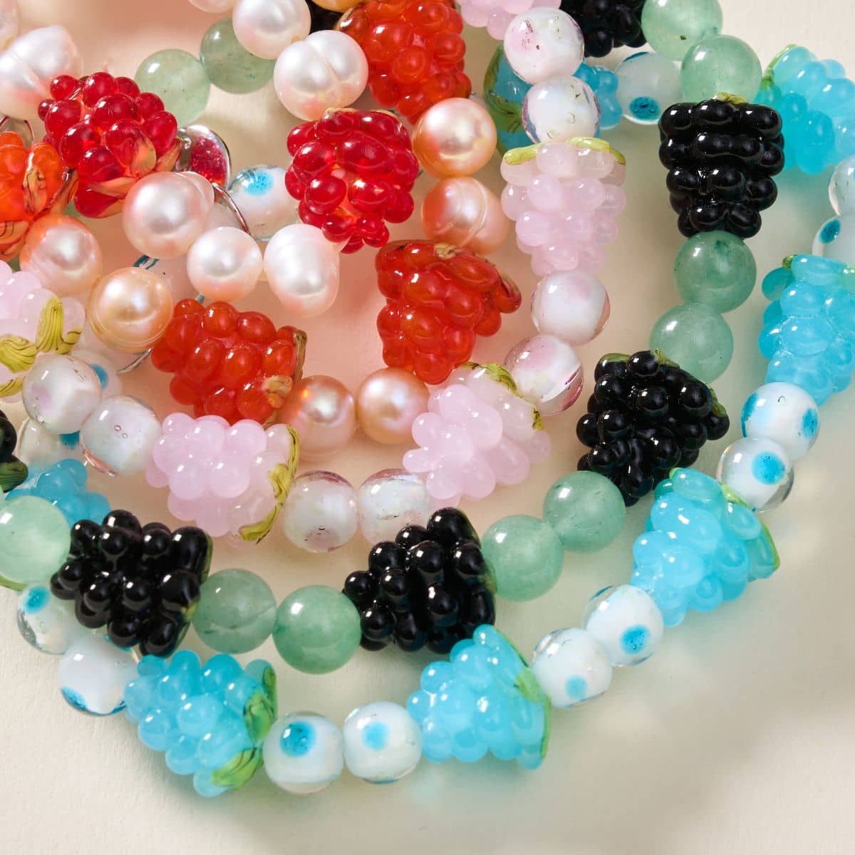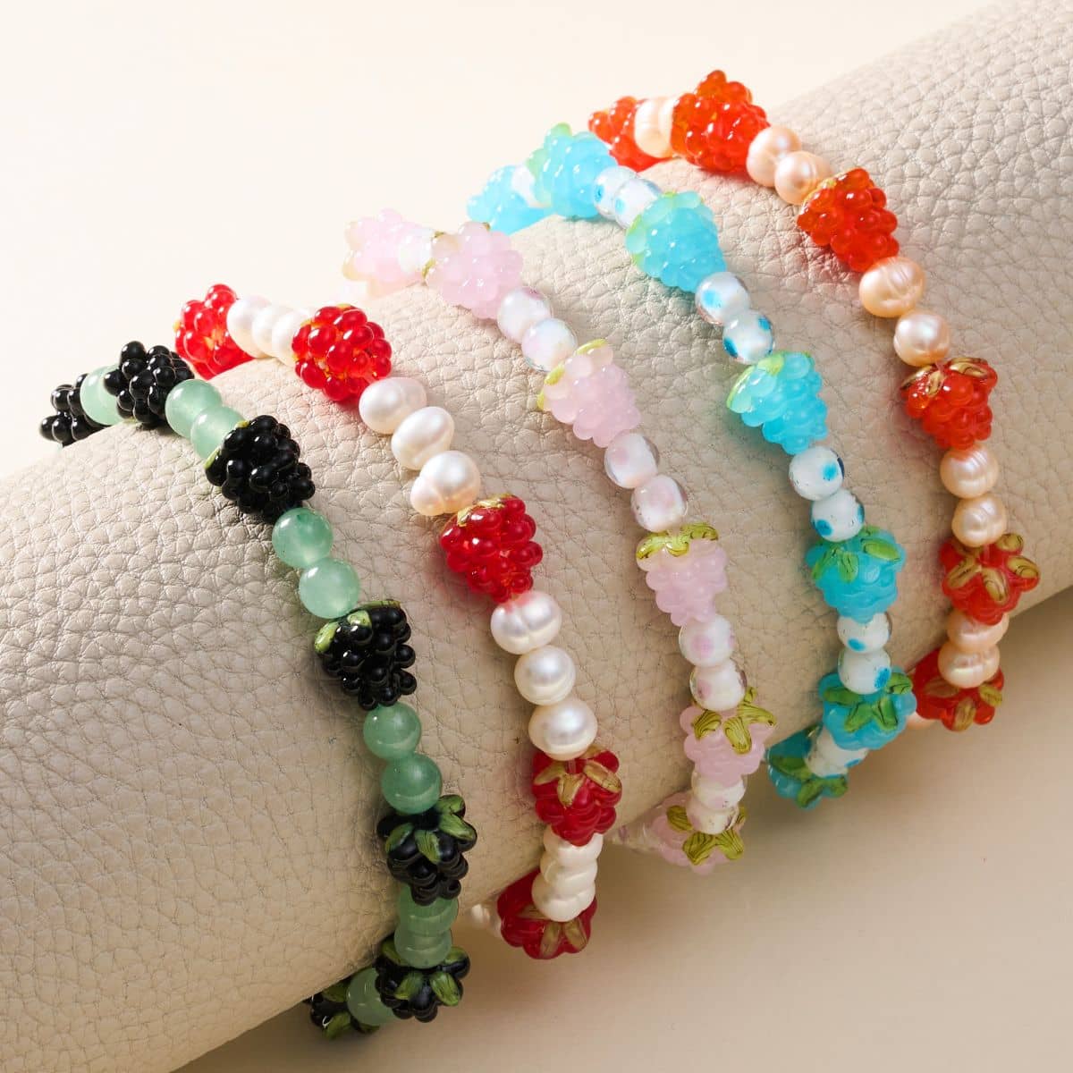 | | | | | WHY TO BUY ? NOGU's Berry Bracelet's lightweight yet intricate design makes them perfect for stacking, gifting, and everyday wear. Enhanced with Firefly Glass™, Freshwater Pearls, or AAA Gemstones, they add a juicy pop of color to any outfit, making them a must-have accessory for embracing summer's fun and flair.